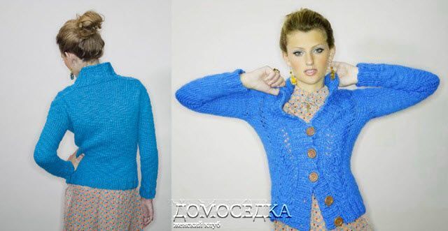 1-й р. (ЛС): 13 п. ажурный узор, НМ, 1 лиц., +1 лиц. вправо, ПМ, 2 лиц., ПМ, +1 лиц. влево, далее лицевые до маркера, +1 лиц. вправо, ПМ, 2 лиц. ПМ, +1 лиц. влево, 1 лиц., НМ, 13 п. ажурный узор = 80 п., из них по 15 п. для каждой передней стороны, 46 п. для спинки и по 2 п. для каждого рукава.