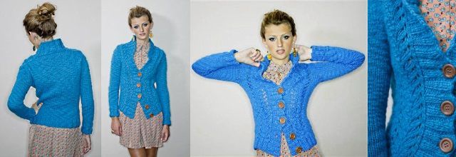 Вязаная спицами кофта от Gretchen Ronnevik выполнена одним полотном сверху вниз.