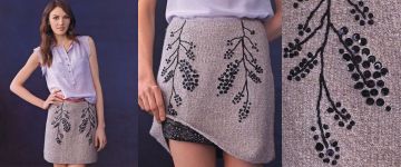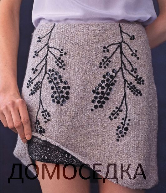 Короткая прямая вязаная спицами юбка от Kristina McGowan украшена вышивкой с блестящими пайетками.