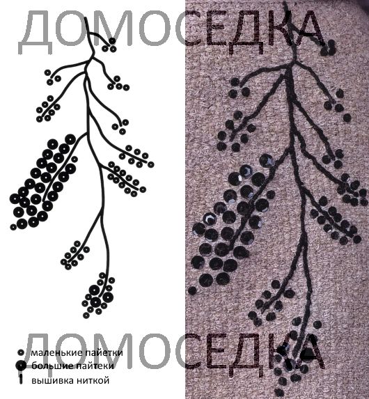 Для вязания потребуется: 7 (8, 9, 10, 11, 12) мотков пряжи ; круговые спицы 5.5 мм длиной 60 см; крючок 3.75 мм; маркеры для петель; эластичный шнур 1 (1, 1, 1.5, 1.5, 1.5) метр; 50 см тонкого клеевого дублирина шириной 1.5 м; 1.5 (1.5, 1.7, 1.7, 1.8) м кружевной тесьмы черного цвета (опционально); 5 моточков ниток для вышивания №3 (100% хлопок) черного цвета; 232 пайектки по 10 мм, 112 пайеток по 12 мм; игла для вышивания по трикотажу.