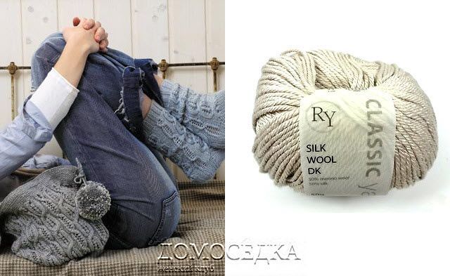 Чтобы связать сумку потребуется 5 мотков пряжи Rowan Classic Silk Wool (50% шерсть, 50% шелк; 100 м/50 г); спицы 3.15 и 4 мм, вспомогательная спица; небольшой кусок ткани для подкладки.