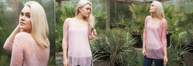 Пряжа: Knit Picks Aloft (75% супер кид мохер, 25% шелк; 246 ярдов/25 г.): оттенок Blush 25205, 4 (5, 5, 6, 6, 7, 7, 8, 8) мотков.