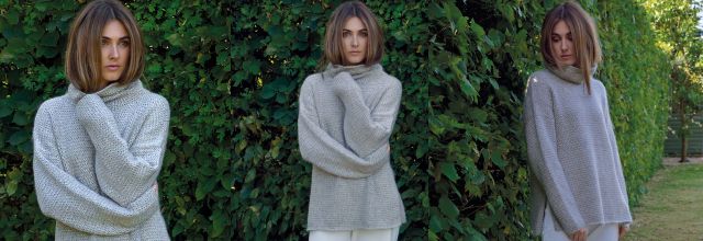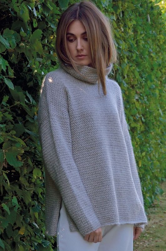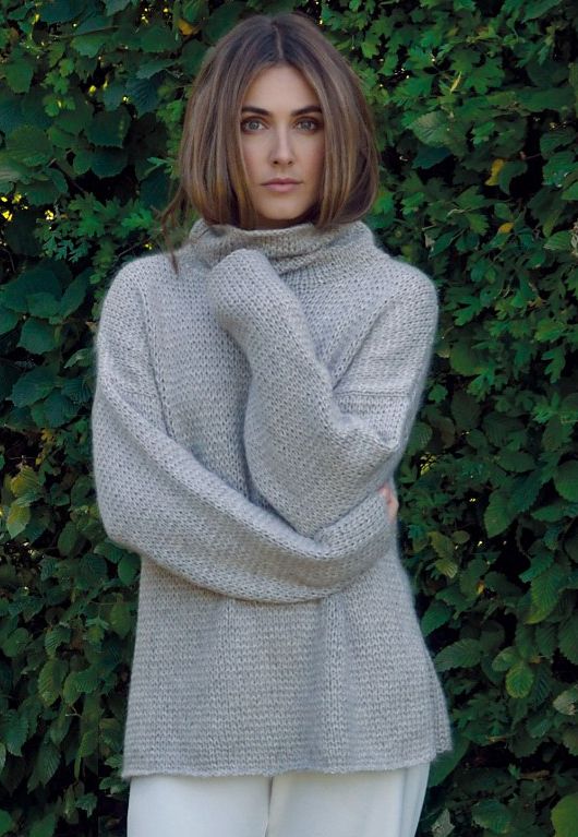 Плотность вязания: 13 петель и 20 рядов = 10 х 10 см, узор попеременно спицами 4,5 мм и 9 мм в две нити пряжи (одна нить Softyak DK и одна нить Kidsilk Haze). Рекомендуется вязать в две нити пряжи от отдельных мотков, а не сматывать два мотка в один.