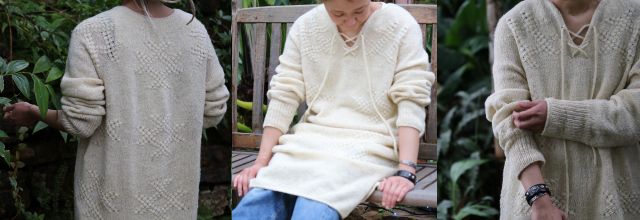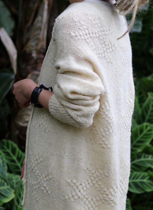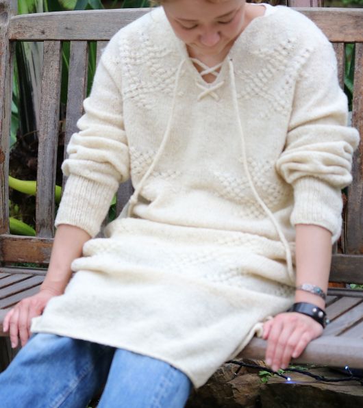 Оригинальная вязаная туника ForMyFriend свободного кроя выполнена спицами сверху вниз.