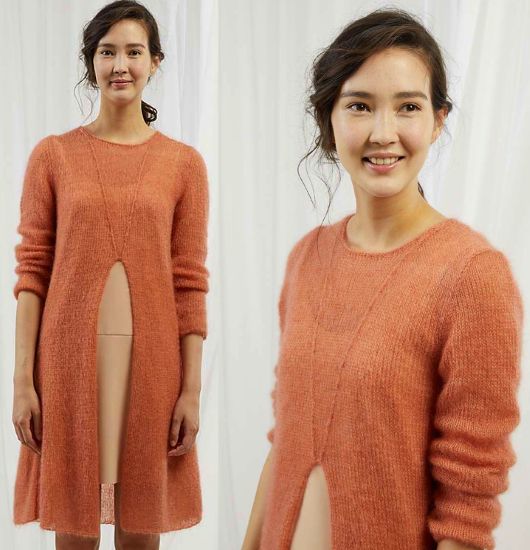 Длинная вязаная туника Luxe с V-образным разрезом спереди, выполнена из высококачественного шелковистого мохера.