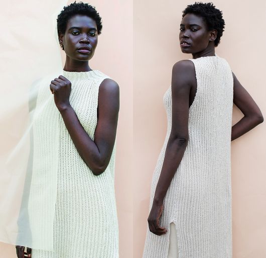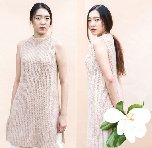 Вязаная туника Saft выполняется прямо отдельными деталями от нижнего края до края горловины. В конце детали сшивают. Обратите внимание, что при подсчете рядов узора бриошь каждая видимая лицевая петля представляет собой 2 обработанных ряда. Выберите размер с прибавкой на свободное облегание 4-10".