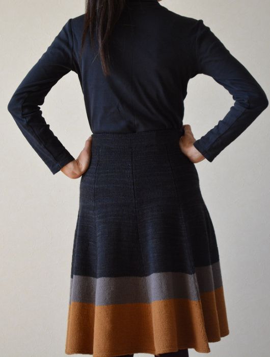 Вязаная юбка Jaunty выполняется вкруговую сверху вниз от пояса до нижней планки. По окончании вязания юбки, пояс формируется сложением вдвое секции пояса , нижняя часть подшивается с изнаночной стороны и затем вставляется эластичная резинка. Юбка состоит из восьми клиньев, цвета юбки подбирайте на свой вкус!