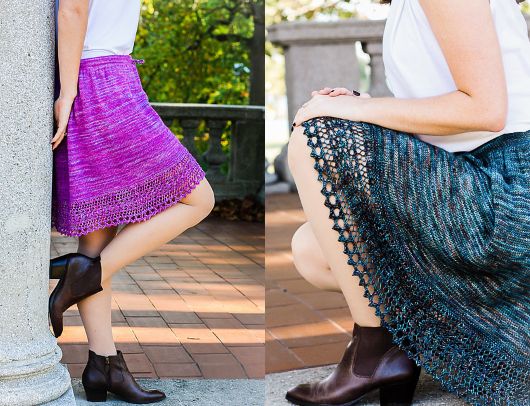 Летняя вязаная юбка Glory выполняется спицами сверху вниз лицевой гладью. Подол юбки украшает красивая кружевная кайма. Гладкое полотно лицевой глади с драпировкой будет красиво развеваться при движении.