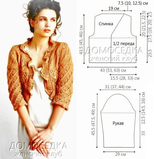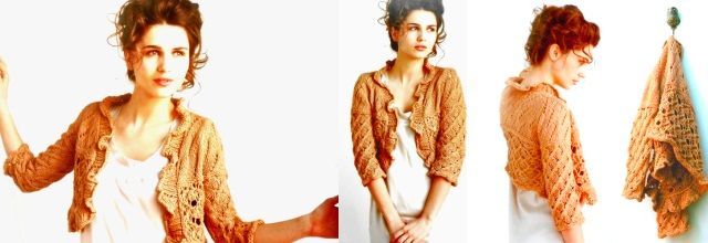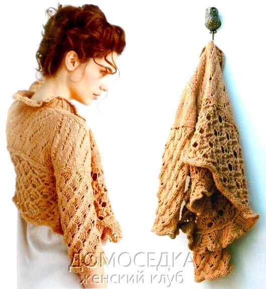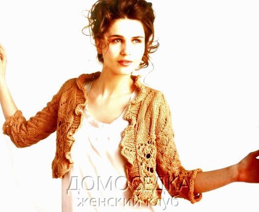Вязание ажурного болеро Milan от Teva Durham выполняется спицами комбинированным узором.