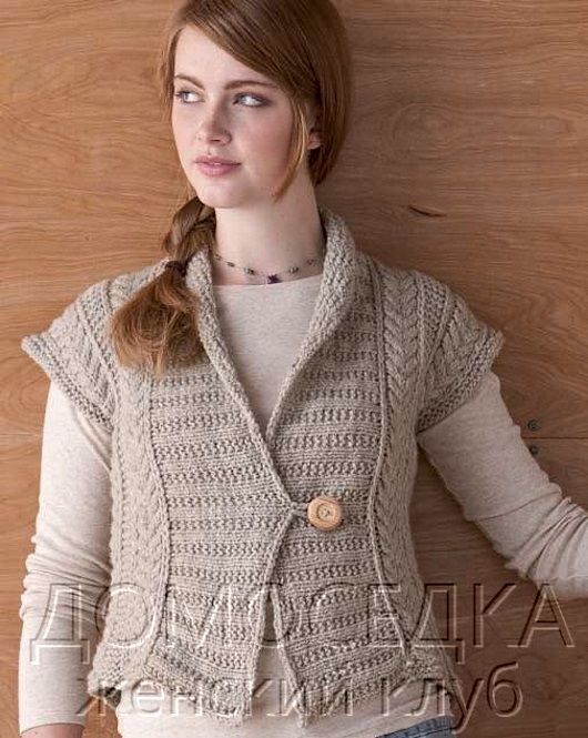 Симпатичная вязаная безрукавка Eco от Katie Himmelberg выполняется спицами.