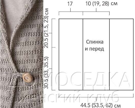 Вязать спинку, пока высота проймы не составит 20.5 (21.5, 23) см, закончить во 2-м ряду узора.