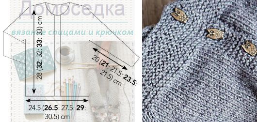 Окружность грудной клетки 48 (50, 53, 56, 59) см. Длина кофточки 28 (32, 32, 33, 33) см.