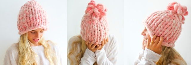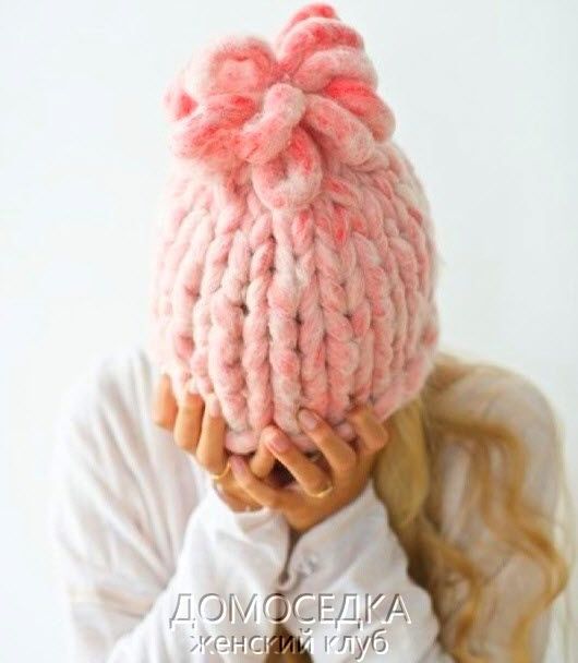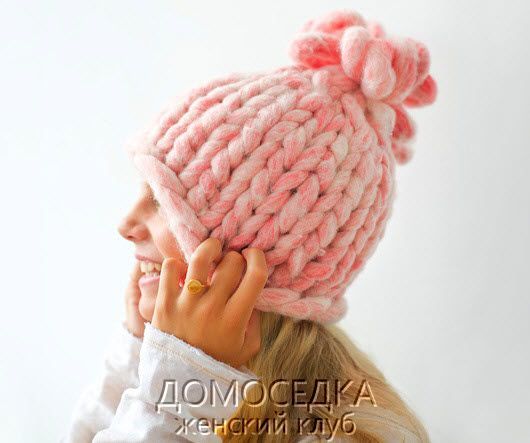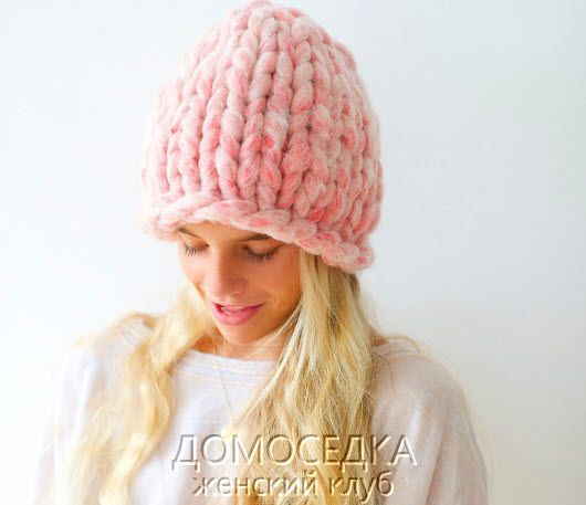 Модная вязаная шапка из супер толстой пряжи выполняется спицами круговыми рядами. Вязание модной шапки спицами займет буквально один час.