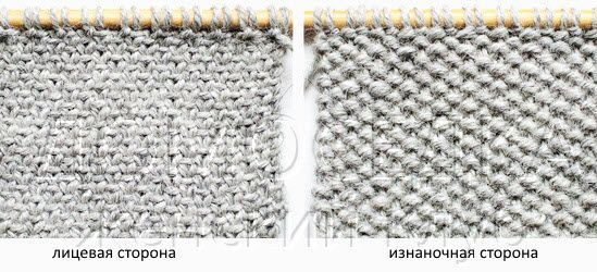 1-й ряд (ЛС): 1 петлю снять как изнаночную (кромочная), *перевести нить вперед и снять 1 петлю как изнаночную, перевести нить назад и вязать 1 лиц*; повторять от * до *, последняя петля 1 лиц (кромочная).
