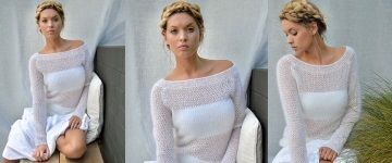 Шикарный тонкий вязаный пуловер Ebb от Kim Hargreaves выполняется из нежнейшей пряжи спицами четырех размеров.