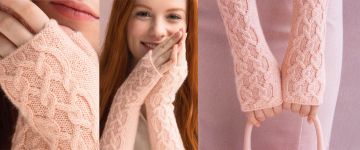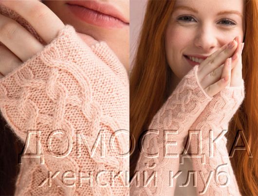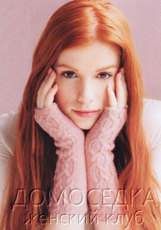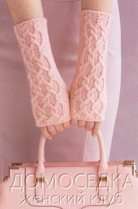 Вязаные спицами митенки от Olga Rych выполнены красивым витым узором круговыми рядами.