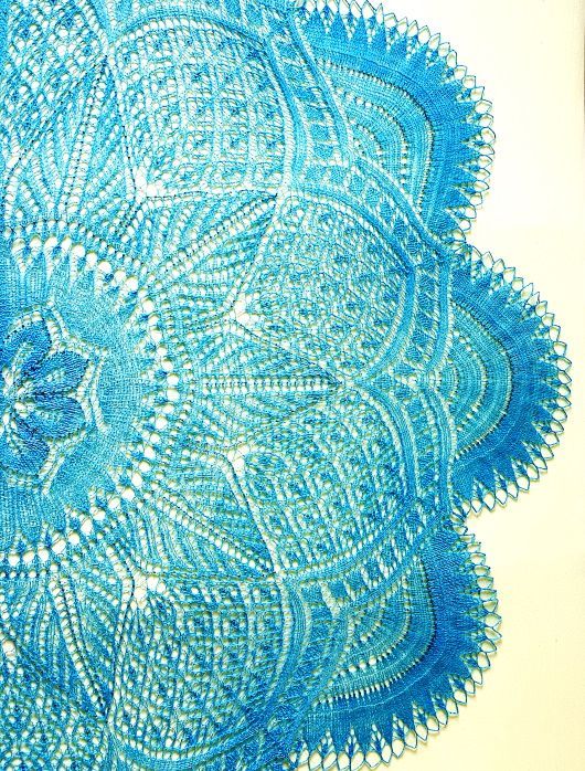 Тонкая, как паутинка, круглая вязаная шаль Knitandala. Узоры мандалы визуально уравновешивают формы и элементы, делая их гармоничными. Соединив мандалу с вязанием, вы испытаете чувство исцеления и получите произведение искусства на своих плечах.
