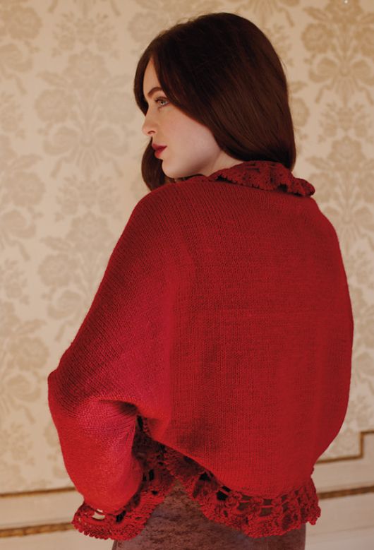 Эффектное болеро Carnelian вязаное из мягкой пряжи, прекрасно дополнит любой наряд из вашего гардероба. Края болеро отделаны красивой ажурной каймой, связанной крючком.