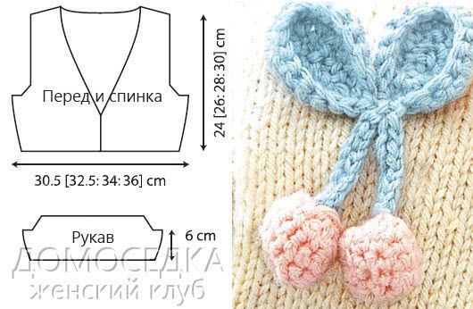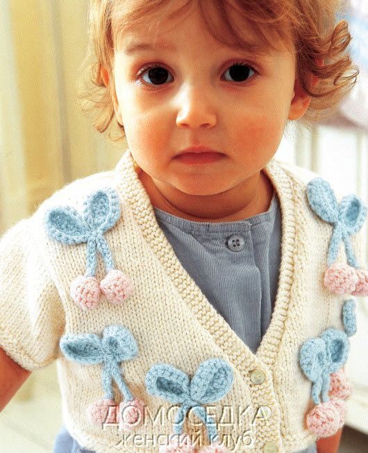 Вязаное болеро для девочки от Martin Storey выполнено спицами и украшено декоративными вишнями.