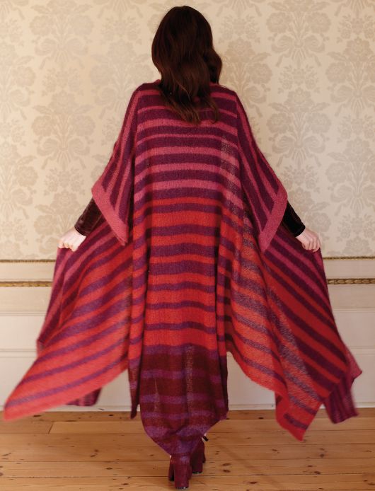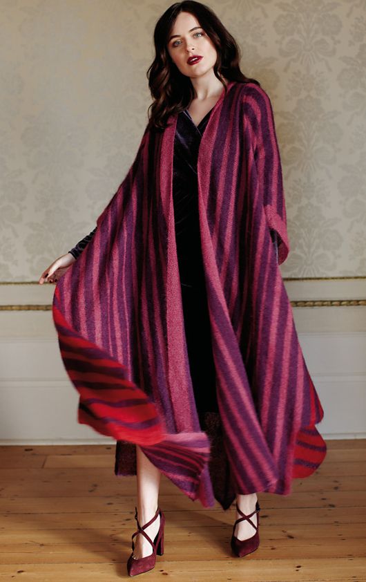 Элегантное длинное вязаное пальто Perinone свободного кроя, без застежки, с рукавами три четверти, выполнено узором в полоску из мягкой пряжи четырех гармонично сочетающихся цветов. Это пальто идеально подойдет для межсезонья.