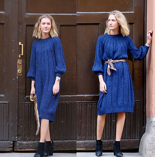Легкое, тонкое и женственное, но в то же время теплое вязаное платье Cocoon. Модель красиво драпируется, а тонкая структура создает ровные продольные линии. Платье вяжется сверху вниз без швов, из двух типов пряжи, сложенным вместе.