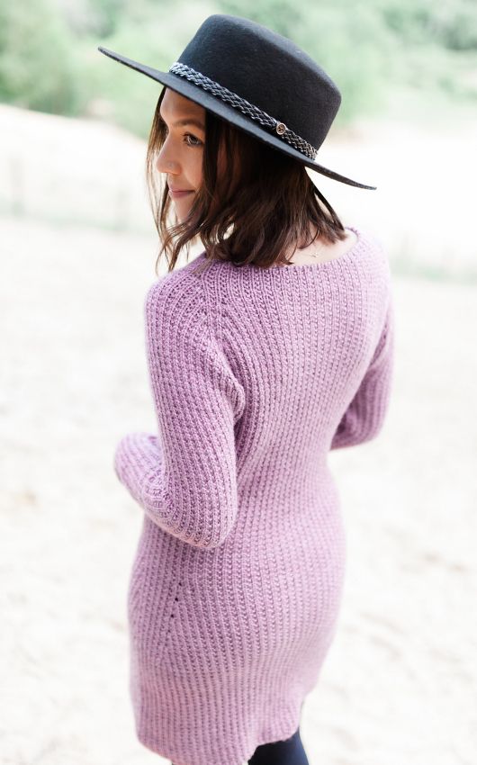 Вязаное платье Delamere удобное и одновременно стильное, выполнено узором ломаной резинкой. Платье можно выполнить в одном из двух версий: современной, в форме кокона и классической – прямой и прилегающей. В случае, если у Вас промежуточный размер, то предлагается выбрать на 1 размер меньше для современной версии и на 1 размер больше для классической версии.