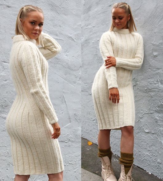 Вязаное платье Dressilicious приталенного силуэта выполняется сверху вниз одним полотном без единого шва! Силуэт формируется за счет прибавок и убавок. Основная вязка резинка 4х4.