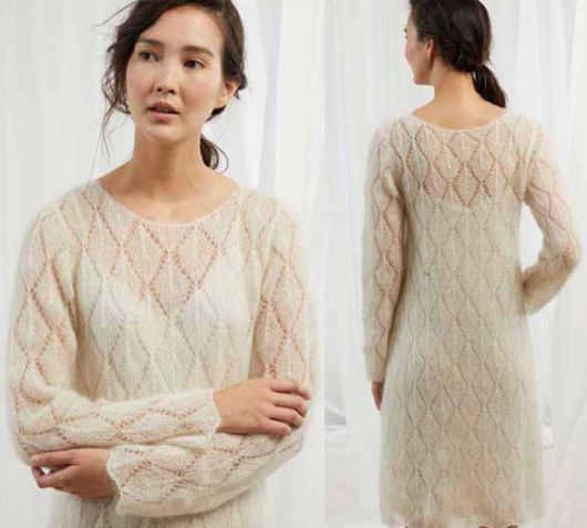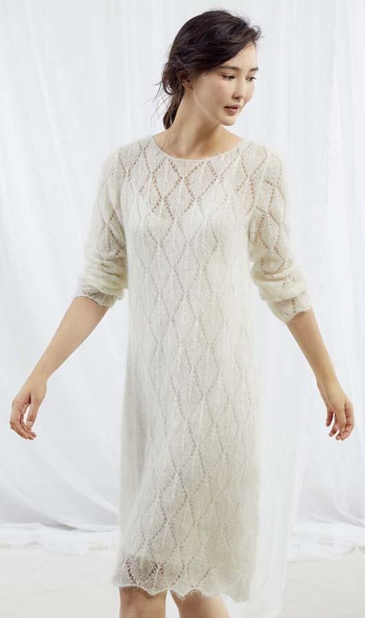 Бесподобное ажурное вязаное платье LangDress выполнено из шелковистой мохеровой пряжи.