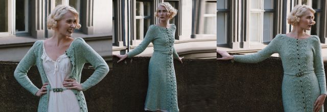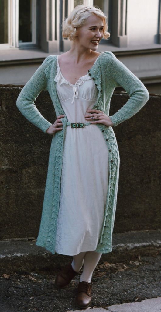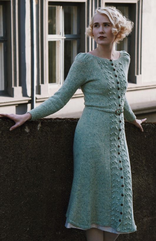 Вязаное платье Лесная ягода в винтажном стиле. Узор «ягоды» - идеальная деталь для всех северных сезонов. Платье вяжется снизу вверх. Благодаря пуговицам, идущим по всему переду, оно также может быть использовано в качестве пальто!