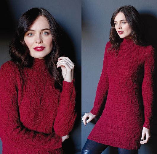 23 петли и 31 ряд = 10 х 10 см, узор спицами 4 мм.