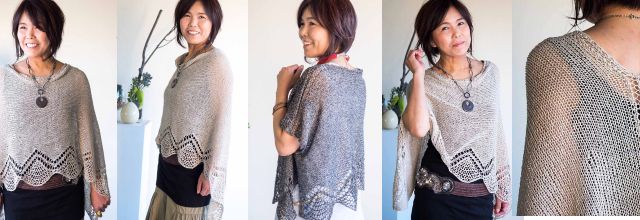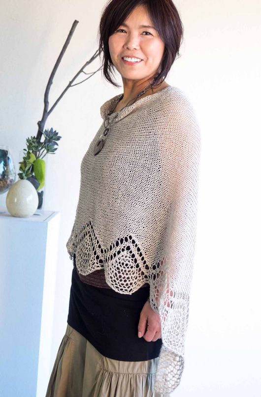 Нежное женственное вязаное пончо Chic выполняется с использованием двух ажурных узоров: прямым сетчатым узором с накидами и ажурным узором «Волна». Эти 2 вида узора отлично дополняют друг друга. Вы можете носить это пончо со швом на плече или в центре спинки. Ажурные узоры видны лучше, когда вы носите его со швом в центре спинки. Сшивание подмышек - ваш выбор, если вы предпочитаете пуловер, такой как пончо, то это будет более подходящий стиль. Форма волнистого узора создается по узору тела. Узор тела включает в себя сетчатый узор с накидами вдоль одного края, лицевую гладь в центре и волнистый ажурный узор вдоль другого края.