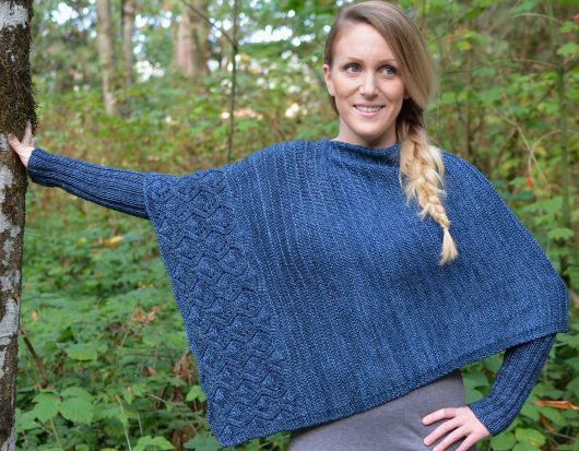 Glenavy -это современное вязаное пончо, которое поднимает любой наряд на уровень от повседневного до стильного. Универсальная посадка и легко регулируемый размер, этот асимметричный дизайн с высокими нарукавниками защитит вас от прохладных осенних вечеров и до бодрящих зимних вечеров. Вязание начинается с временного набора петель и далее полотно вяжется из стороны в сторону. Данное описание предлагает пошаговые инструкции для создания удобной, текстурированной одежды. Glenavy-это бесшовное пончо, которое позволяет увлеченной начинающей вязальщицы практиковать свои навыки и является привлекательным вязанием для опытного мастера.