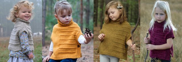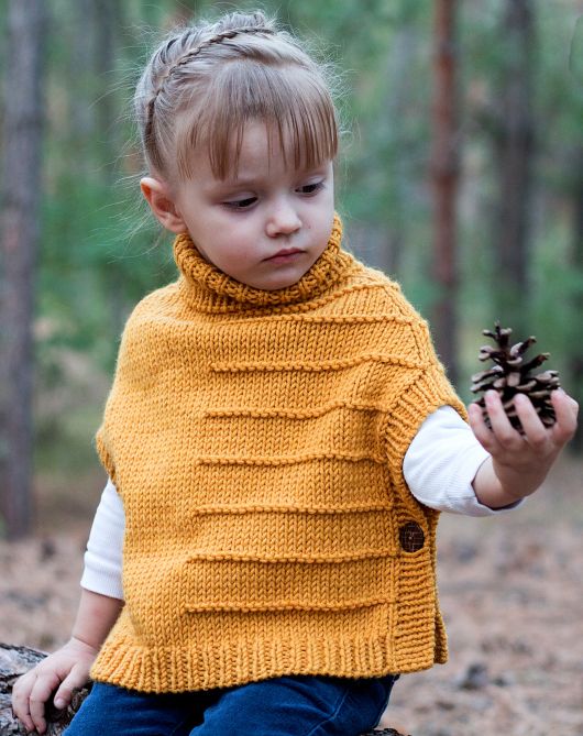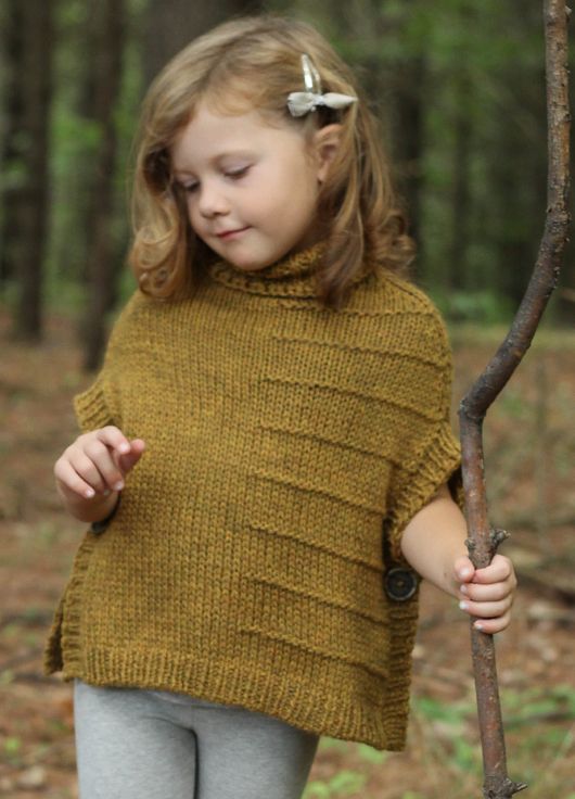 Вязаное пончо MiniGale для маленьких модниц. Удобная и современная модель с высоким воротником выполняется сверху вниз. Пончо вяжется легко и быстро спицами большого размера.
