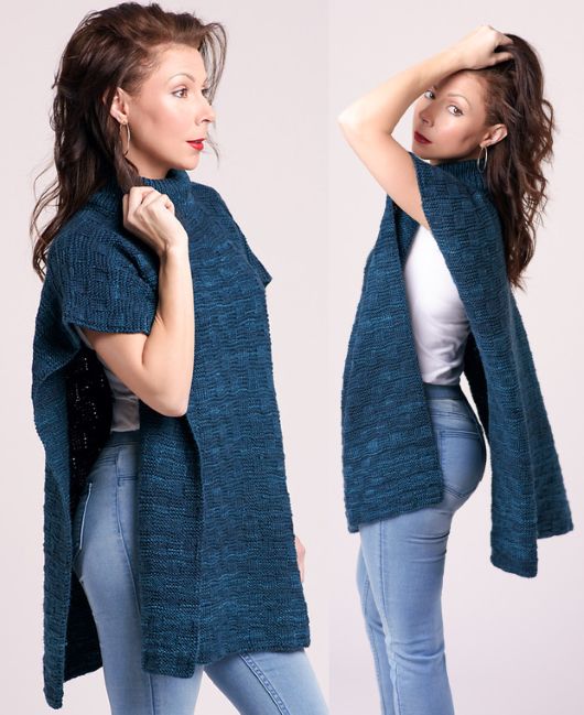 Бодрящие утренний воздух начинает извещать об осени и Вам нужно что-то, чтобы согреться во время ранних утренних прогулок в саду, в лесу, или вдоль реки. Вязаное пончо Riverwalk является идеальной вещью, чтобы согреть вас, но также его можно быстро снять, когда днем становится теплее. Вы обнаружите, что мечтаете о туманных утренних часах и смене листьев, во время вязания этого забавного текстурного пончо. Пончо вяжется поворотными рядами и состоит из двух частей, которые соединяются в плечах методом трех спиц. Для воротника петли поднимаются вдоль горловины и воротник вяжется до желаемой высоты (сложенный вдвое). После закрытия петель, воротник складывается вдвое и пришивается к внутренней стороне горловины.