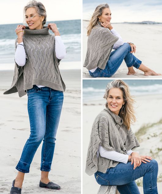 Отличное вязаное пончо Stone Point выполняется красивыми ажурным узором. В процессе вязания можно отрегулировать длину и ширину пончо, выполнив дополнительные раппорты узора. Основной ажурный узор можно вязать по схеме или по словесному описанию.