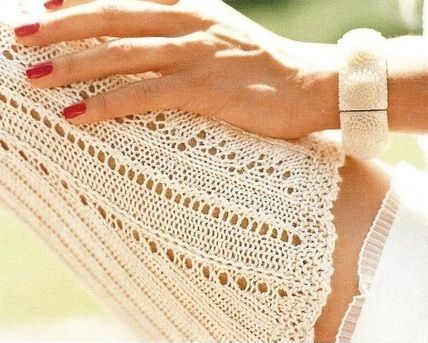 Вязаные ажурные чулки выполнены спицами из шелковой пряжи.