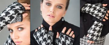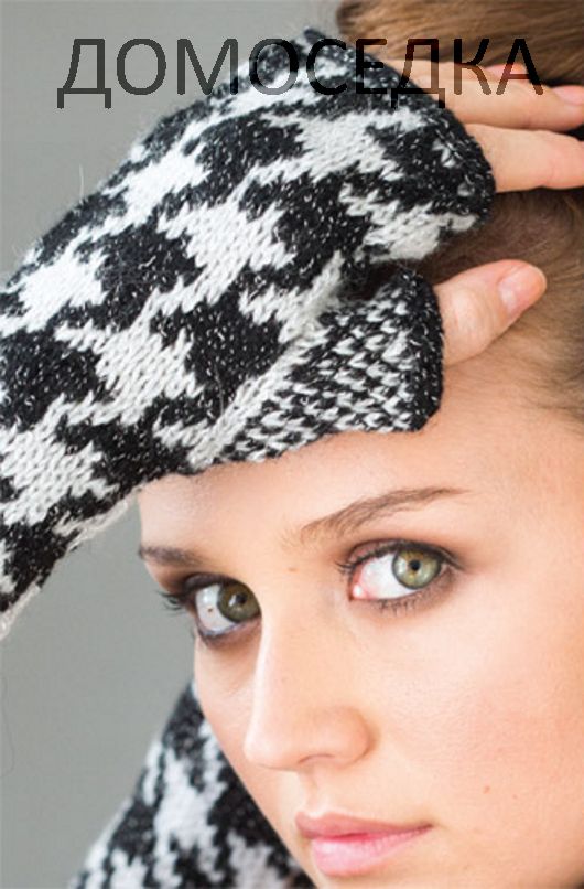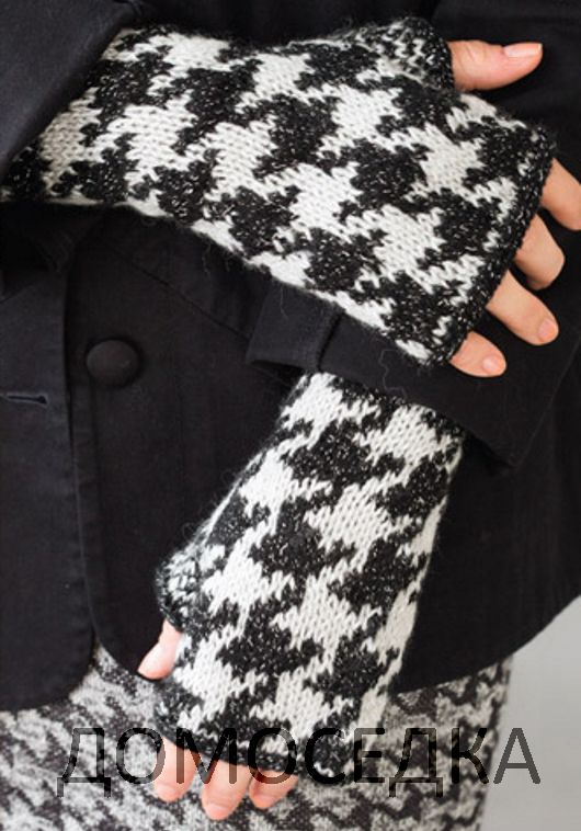 Вязаные митенки от Эми Кифер выполнены спицами узором гусиные лапки.