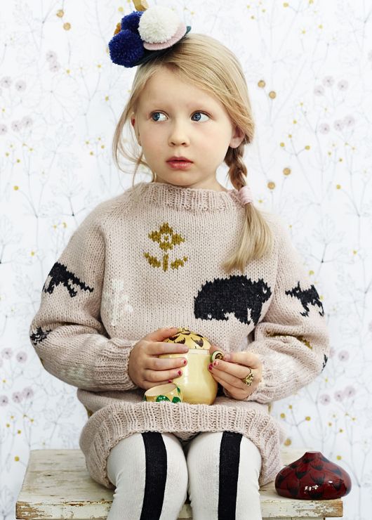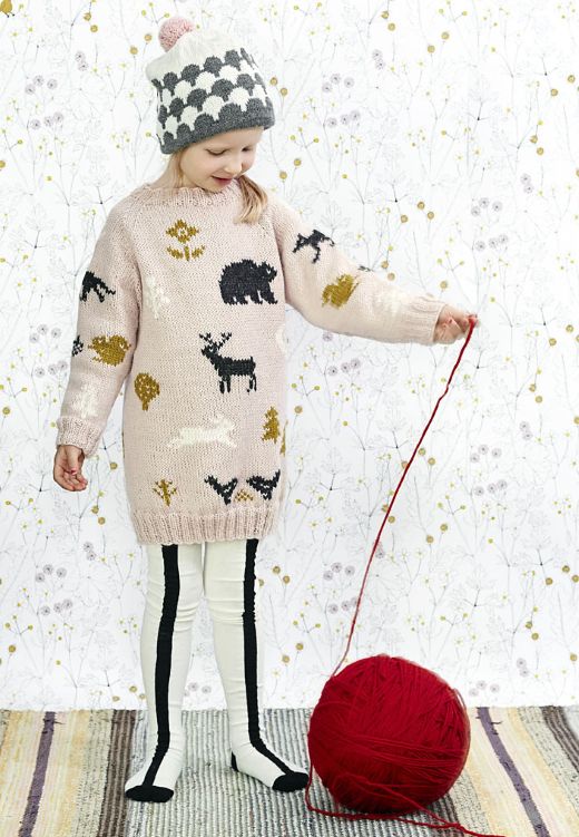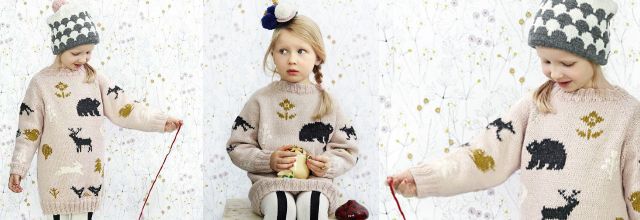 Симпатичный теплый детский свитер Milla вязаный спицами снизу вверх. Свитер вяжется по кругу веселым узором со зверюшками на лицевой глади.