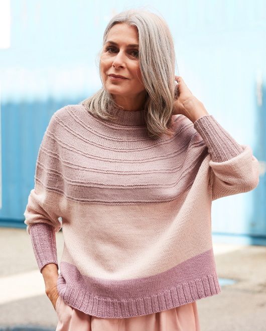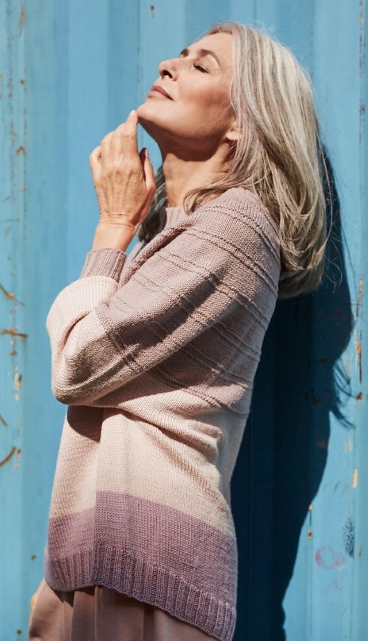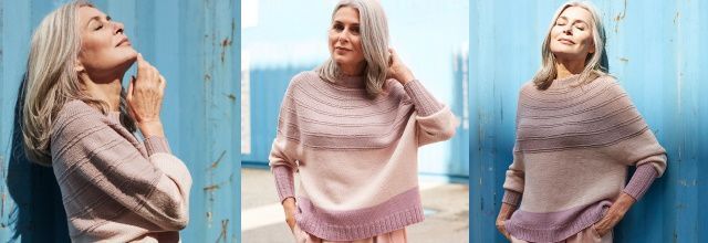 Вязаный джемпер Deleite отлично сочетает в себе непринужденность с женственным современным дизайном, который дает вам много свободы. Его креативная форма с широкими рукавами, глубоким вырезом и немного удлиненной спинкой создает комфорт. Высокие узкие манжеты разных цветов и тонкие полоски на кокетке создают захватывающий контраст с общим мягким полотном. Вяжется джемпер лицевой гладью без швов сверху вниз по кругу. Начать работу с временного набора петель. Укороченные ряды у горловины создают удобную посадку.