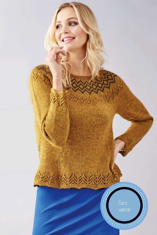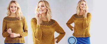 Нам нравится этот яркий дизайн, а симпатичные ажурные детали - дополнительный бонус! Джемпер FairIsle вяжется по кругу, начиная с детали тела. Затем, откладываете эту секцию в сторону, пока выполняете рукава. Наконец, соединяете все это вместе на одних круговых спицах и работаете с кокеткой, плечами и горловиной.