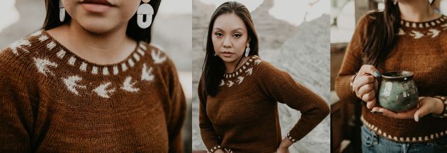 Вязаный джемпер Piksii выполнен сверху вниз по кругу. Бесшовная цветная круглая кокетка с интервалами прибавок по всей длине украшена милым узором. Есть дополнительные укороченные ряды на груди для более свободной посадки вокруг области груди. Автор использовала японские укороченные ряды, так как это наименее заметный метод, но вы можете использовать любой другой способ вязания укороченных рядов. У цветного узора кокетки есть длинные «поплавки» пряжи, так что не забудьте их подхватывать во время работы!
