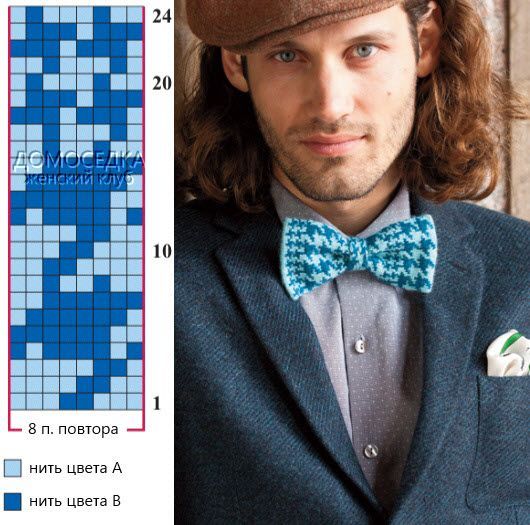 Вязаный галстук-бабочка для стильных мужчин из журнала Vogue Knitting Early Fall 2014.