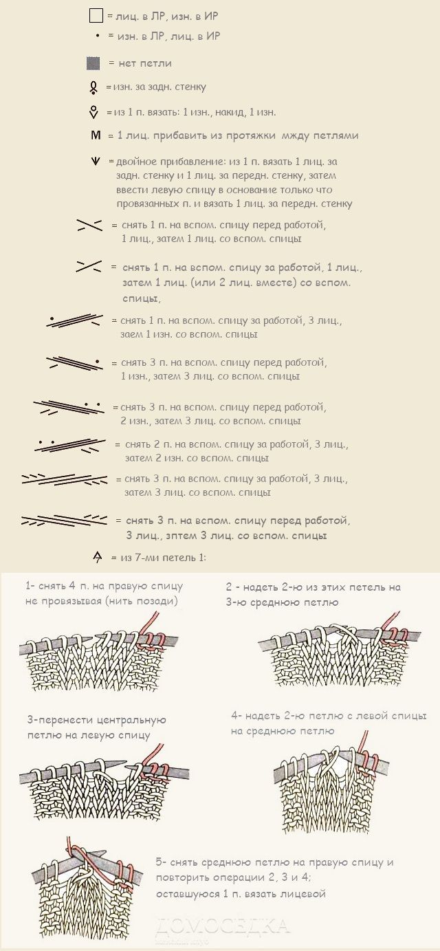 Плотность вязания основного узора 40 п. и 30 р. = 19.5х10 см.