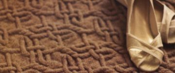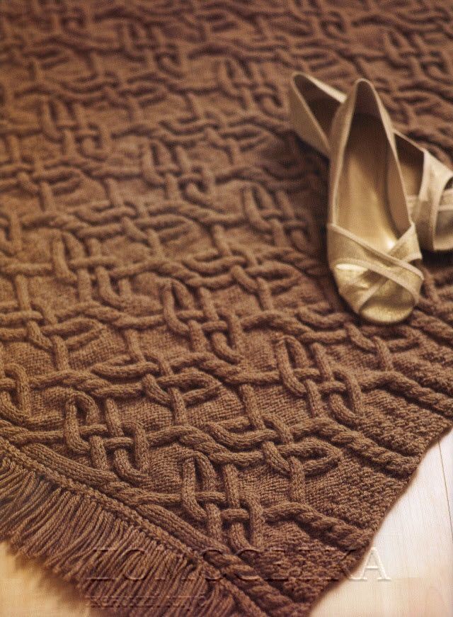 Шикарный вязаный коврик выполнен спицами роскошным узором из аранов.