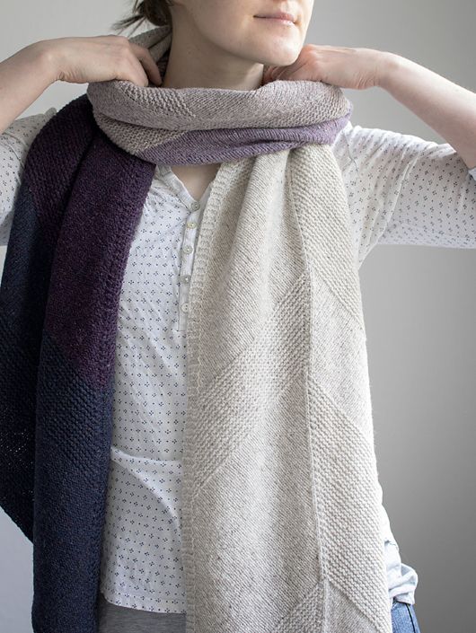 Длинный вязаный палантин Farbulus выполняется спицами асимметричным узором. Простой и незатейливый проект для вязания, но чередующиеся секции между обычной лицевой гладью и платочной вязкой, а также меняющиеся цветовые блоки наверняка заинтересуют и опытную вязальщицу.