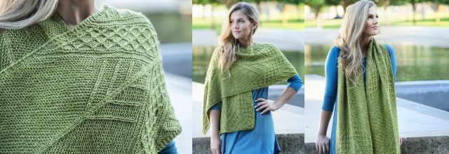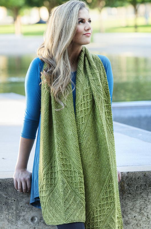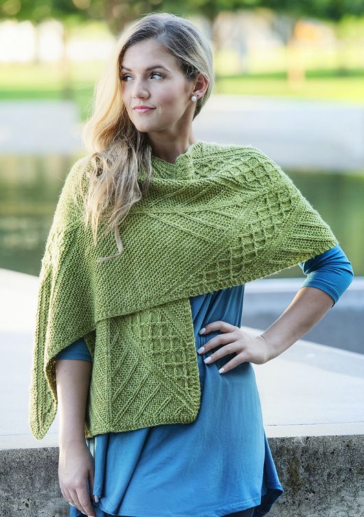 Для создания шикарного и привлекательного палантина Out&About объединились интересная текстура и необычная конструкция. Готовый палантин, несомненно станет любимым у вас или будет бесценным подарком для ваших самых близких. Работа начинается с двух треугольников в центре, затем продолжается от центра в стороны. Большая часть палантина выполняется платочной вязкой. Снятые петли используются для «рисования» ветвящихся линий по полотну. Эти линии граничат с полосами богато текстурированных мотивов, которые гораздо легче вяжутся, чем они выглядят. Увлекательные узоры и пряжа средней толщины позволят быстро снять готовый палантин со спиц. Теплый и стильный палантин идеально подходит для проведения прохладных выходных в ваших любимых местах отдыха.