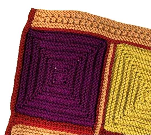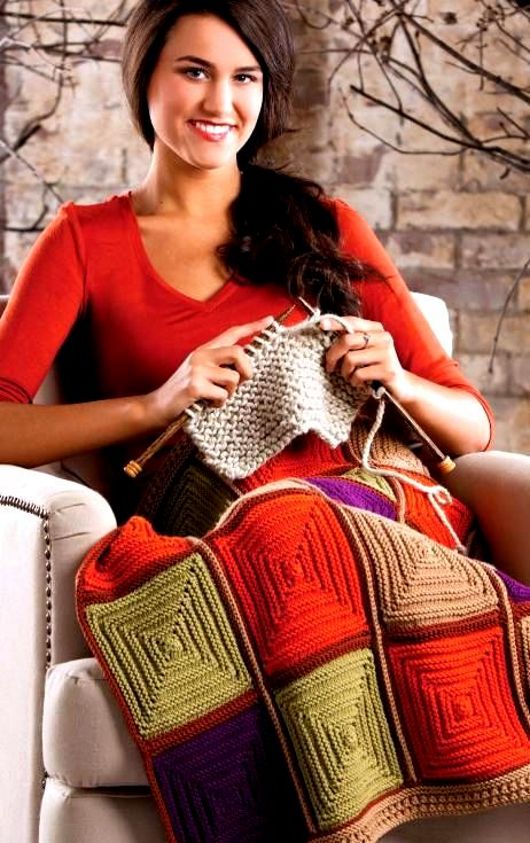 Вязаный плед AllSquaredAway (все в квадрате) легко измеряется путем создания больших квадратов или добавления большего их количества, и является отличным способом использовать оставшуюся пряжу. Вязание пледа может стать любимым времяпровождением потому, что так приятно взять в руки спицы и создать проект, который не требует пошива, кроме как вплетения нескольких оставшихся кусочков пряжи. Активным вязальщицам нравится выполнять модели, подобные этим, в летнее время и осенние месяцы.