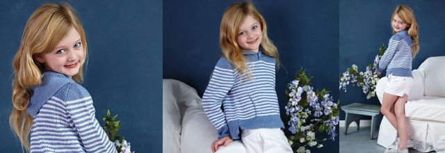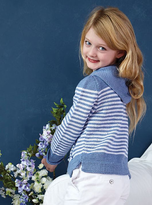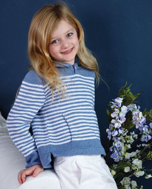 Детский вязаный пуловер StripedHoodie выполнен двухрядными полосами синего и белого цветов напоминают джинсовую ткань. Законченный естественно закрученными манжетами рукавов и свободно облегающим подолом, он также имеет застегнутые планки воротника и карман-кенгуру. Капюшон вяжется отдельно и выполняется так, что можете его опустить в работе, при желании.