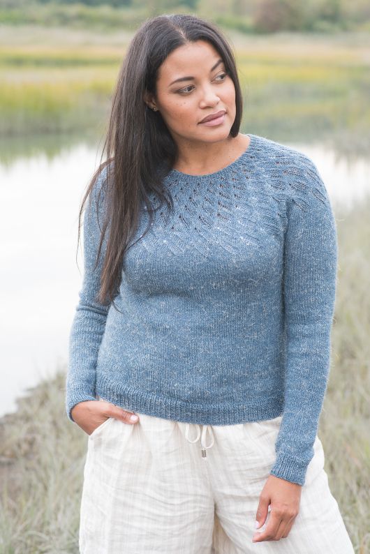 Вязаный пуловер Zoey выполняется сверху вниз без швов.