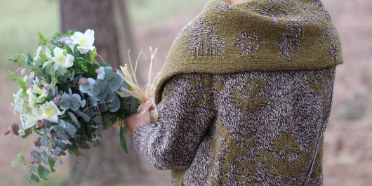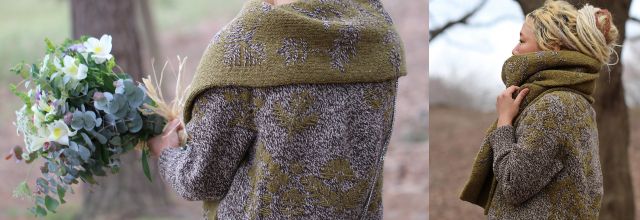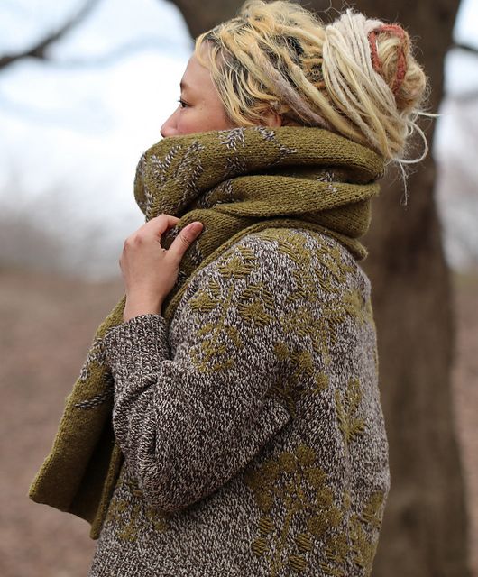 Объемный вязаный шарф Bouquet выполнен спицами тем же узором, что и одноименный свитер.